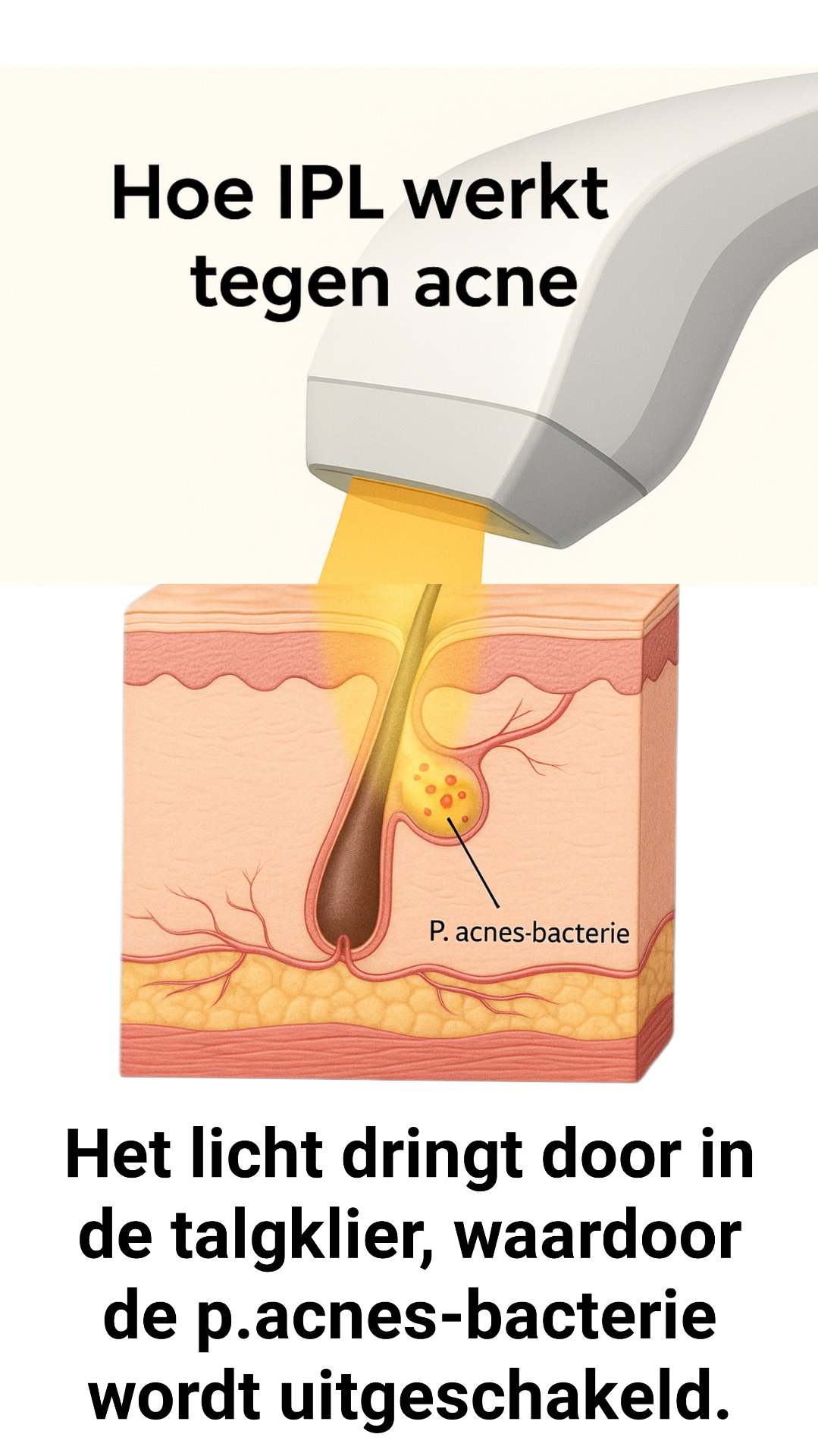 Elimineert de acnebacterie door lichtpulsen die diep in de porie doordringen