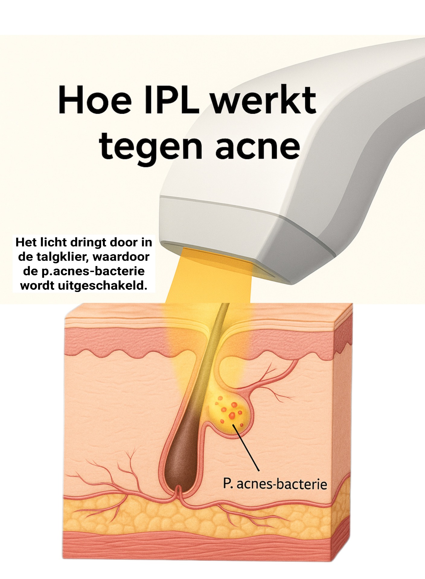 Elimineert de acnebacterie door lichtpulsen die diep in de porie doordringen