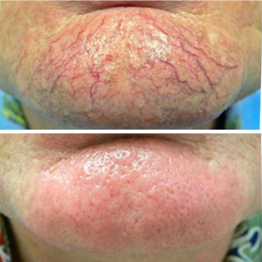 Het behandelde gebied wordt na de behandeling geleidelijk lichter en de vaatjes vervagen.